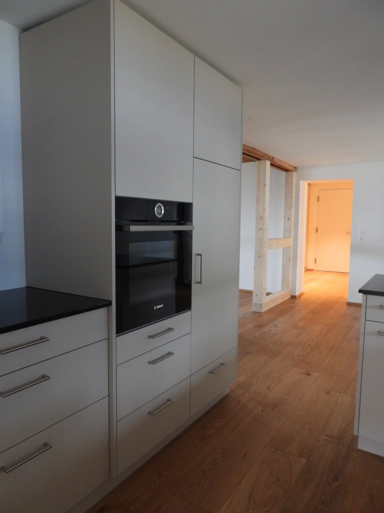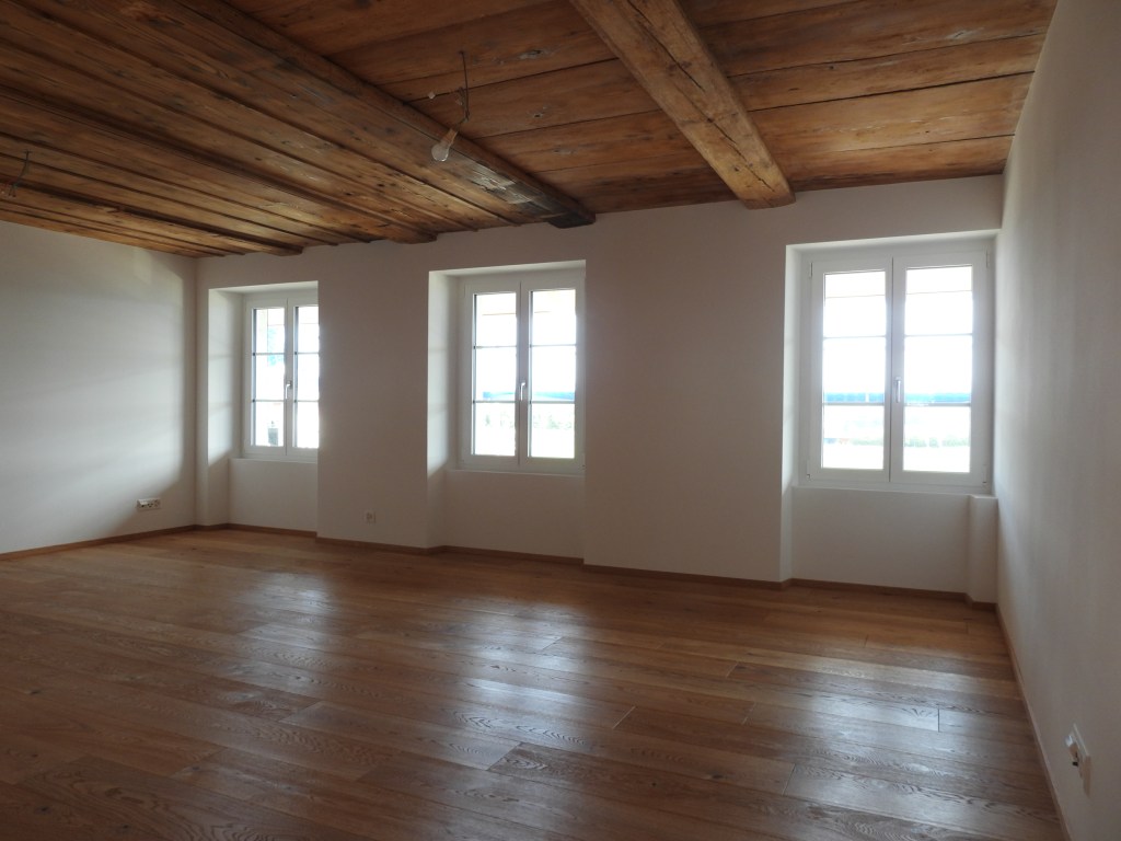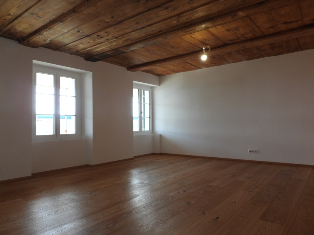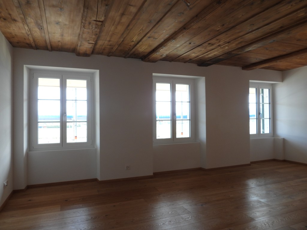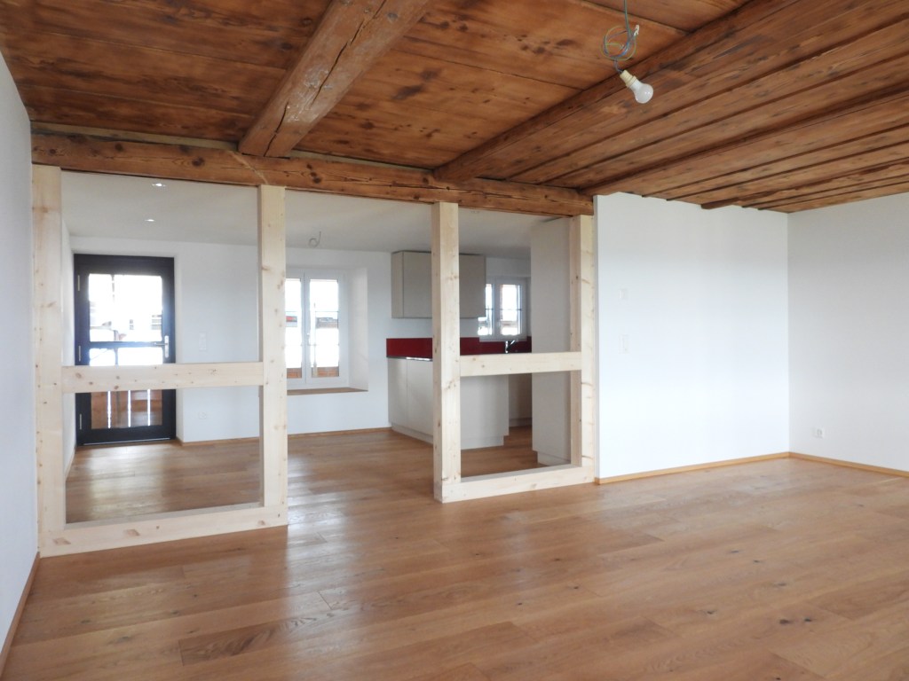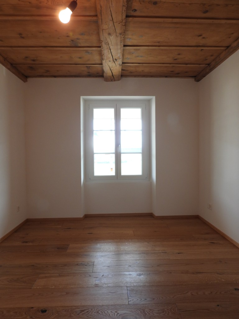 Die Wohnung wurde mit viel Liebe zum Detail und unter Berücksichtigung der historischen Bausubstanzen komplett saniert. Die Wohnung verfügt über eine Nord-Süd Ausrichtung und der Charme des Bauernhauses wurde erhalten. Die Nasszelle in der Mitte der Wohnung dient als raumbildendes Element und ermöglicht die Anordnung der Wohn- und Essbereiche an der gut belichteten Fassadenseite. Beim Ausbau wurde viel Wert auf hochwertigen Parkett sowie moderne Küche und Badezimmer mit eigener Waschmaschine und Tumbler gelegt. Neben einer Laube gibt es ein Kellerabteil inkl. Velokeller.