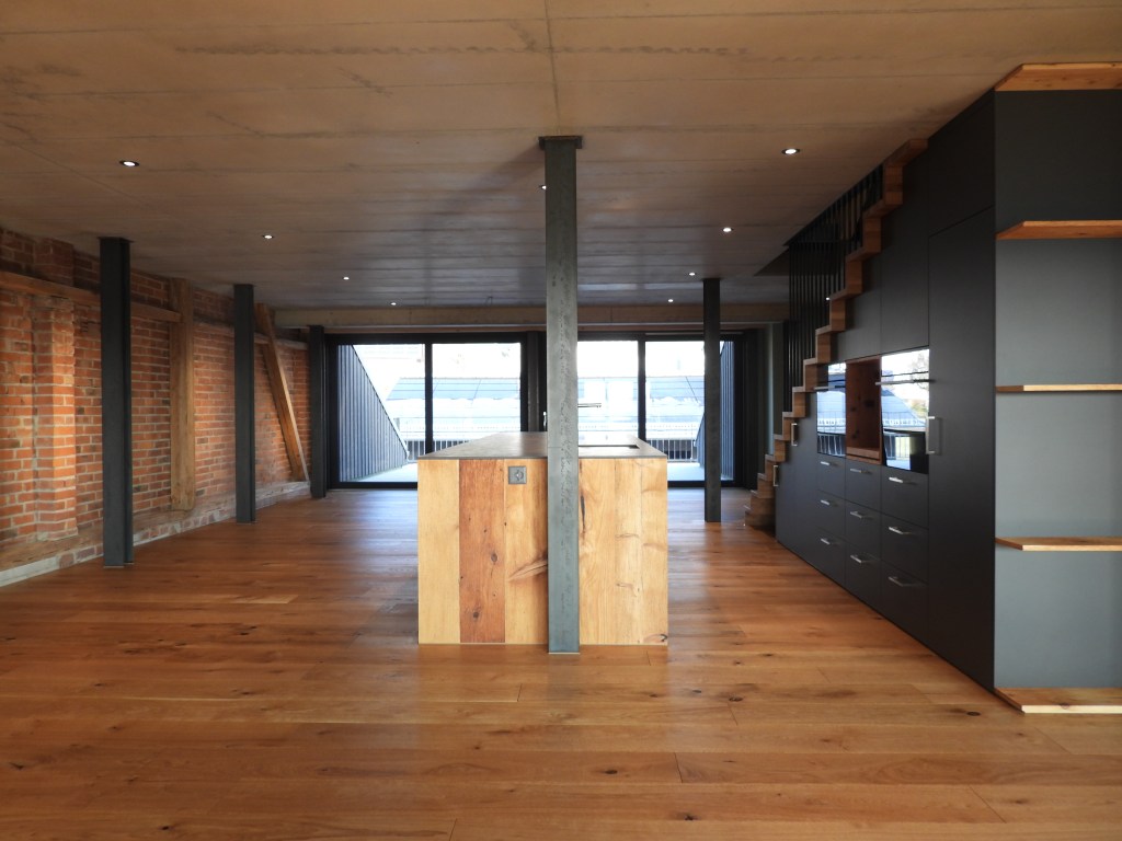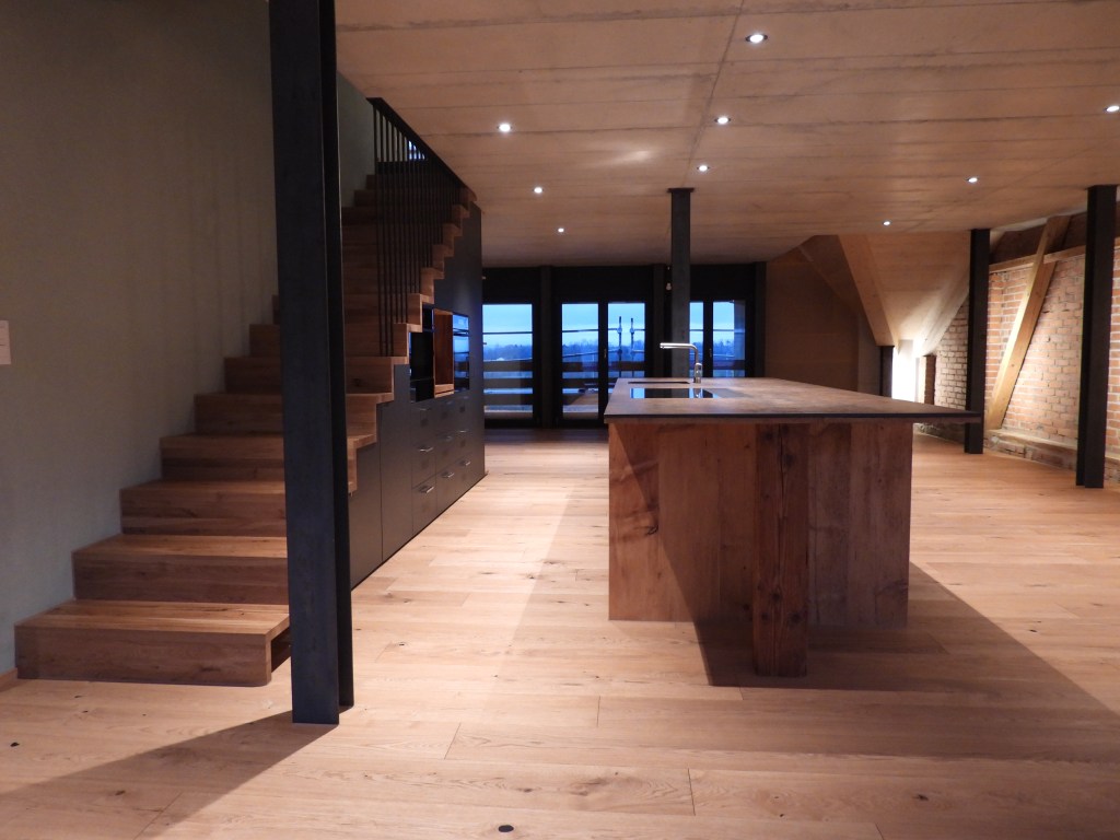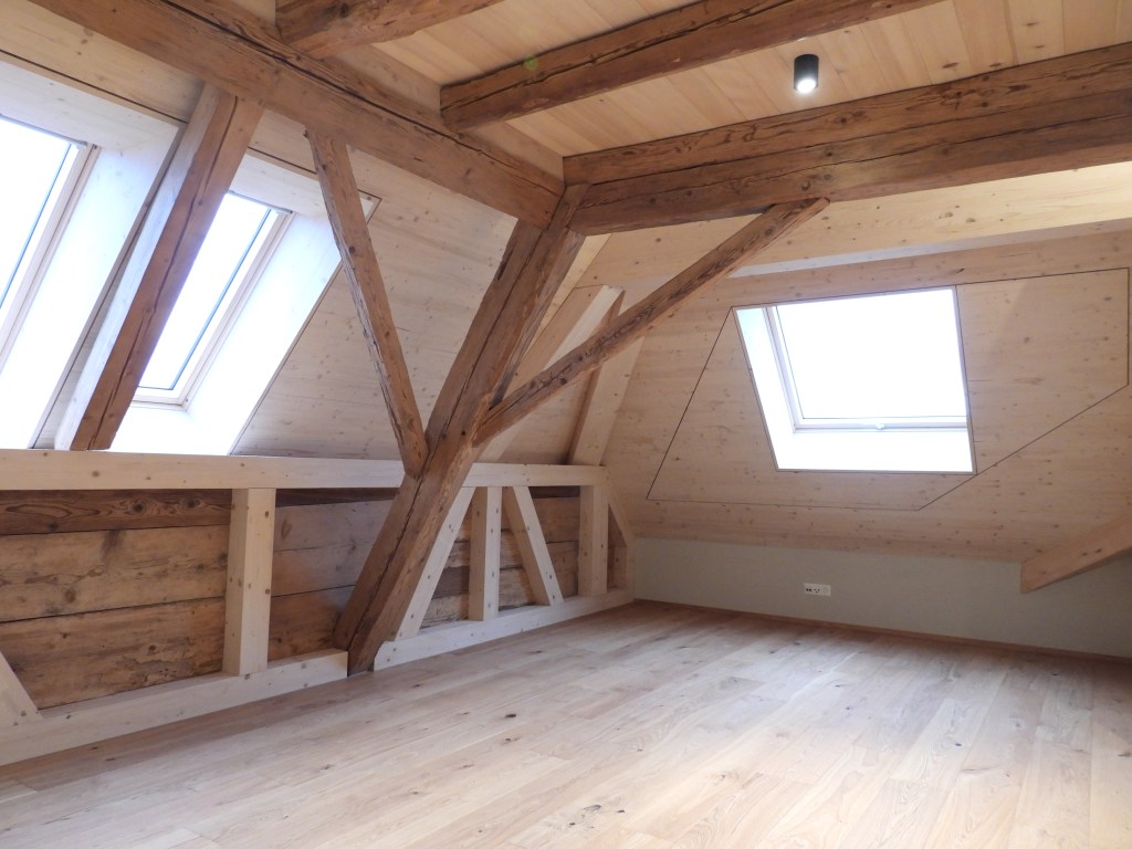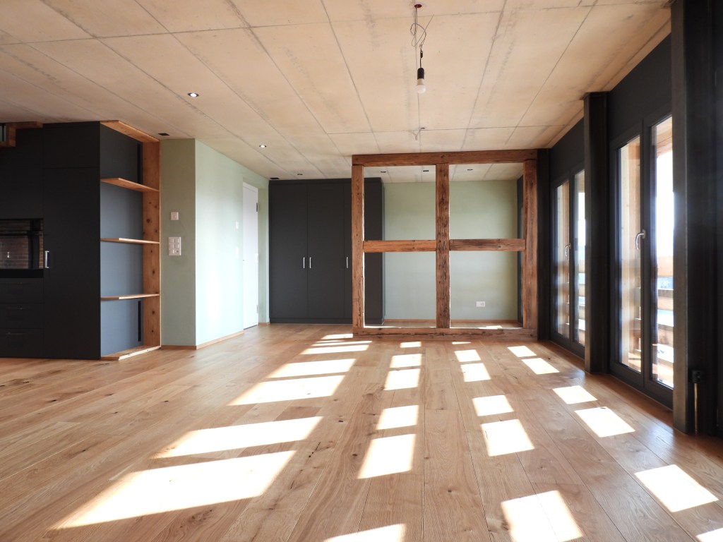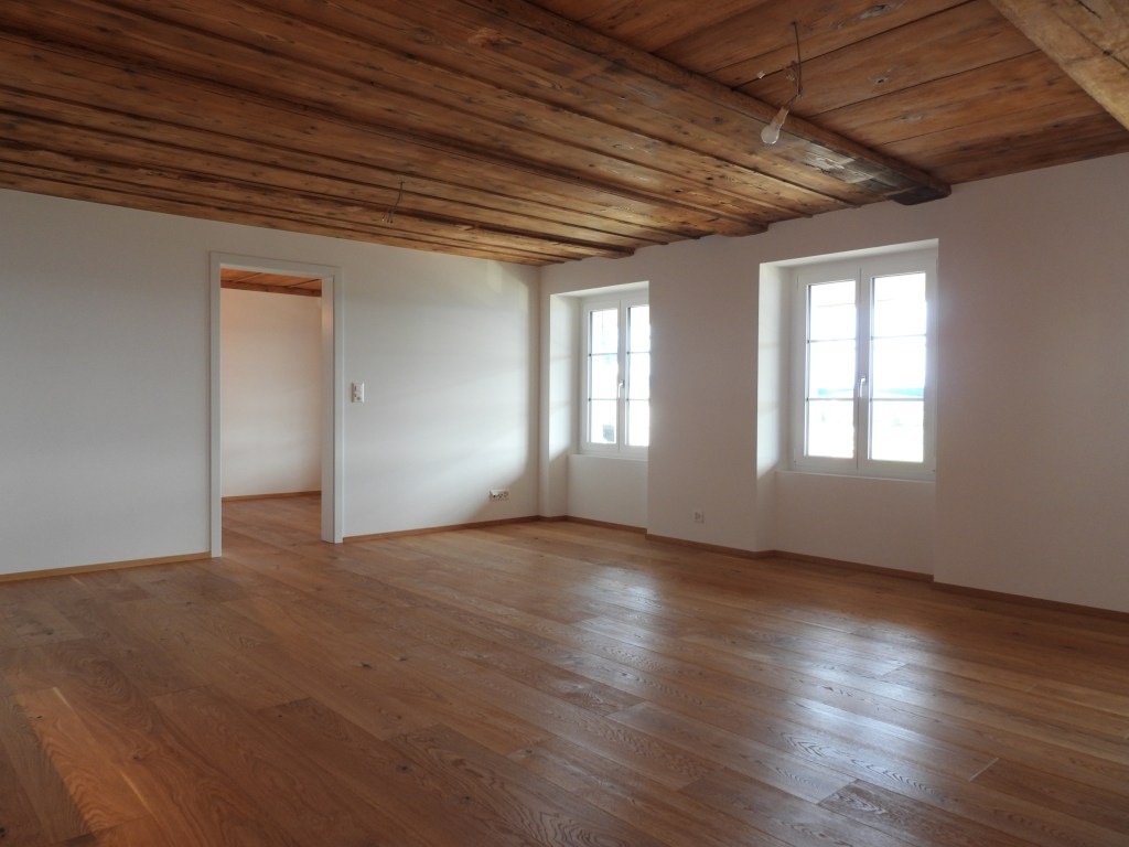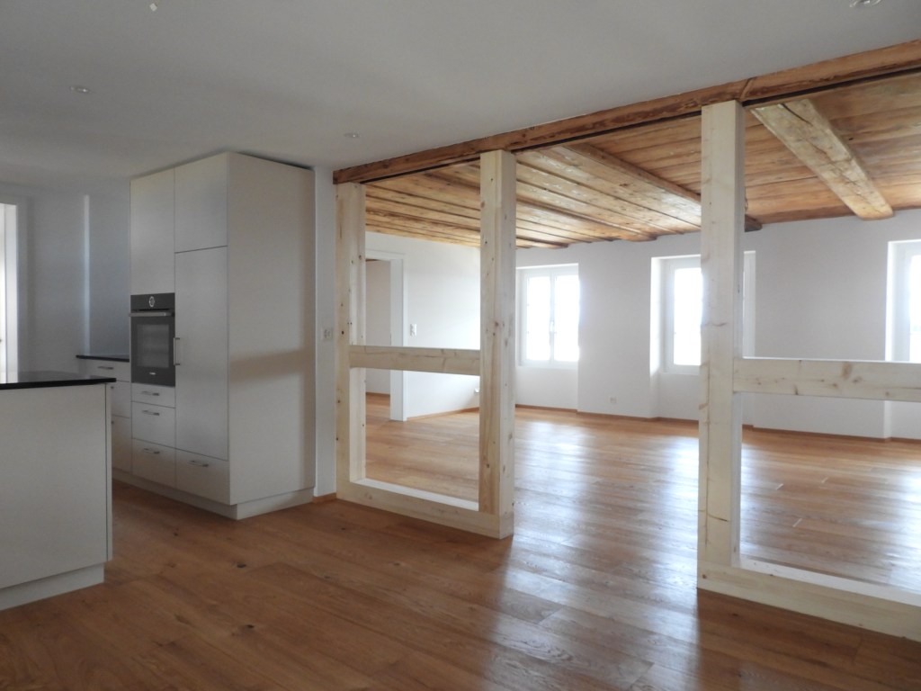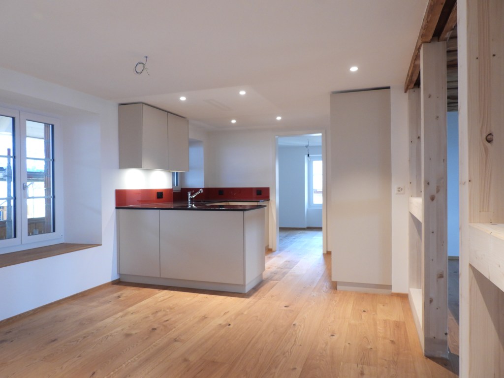 Die Wohnungen wurden mit viel Liebe zum Detail und unter Berücksichtigung der historischen Bausubstanzen komplett saniert. Alle Wohnungen verfügen über eine Nord-Süd Ausrichtung und der Charme des Bauernhauses wurde bei jeder Wohnung eingebaut. Die Nasszellen in der Mitte der Wohnungen dienen als raumbildendes Element und ermöglichen die Anordnung der Wohn- und Essbereiche an den gut belichteten Fassadenseiten. Beim Ausbau wurde viel Wert auf hochwertigen Parkett sowie moderne Küchen und Badezimmer mit eigener Waschmaschine und Tumbler gelegt. Neben Balkonen verfügt jede Wohnung über ein Kellerabteil inkl. Velokeller. So entstehen individuell, stilvoll ausgebaute Wohnungen mit Charme.