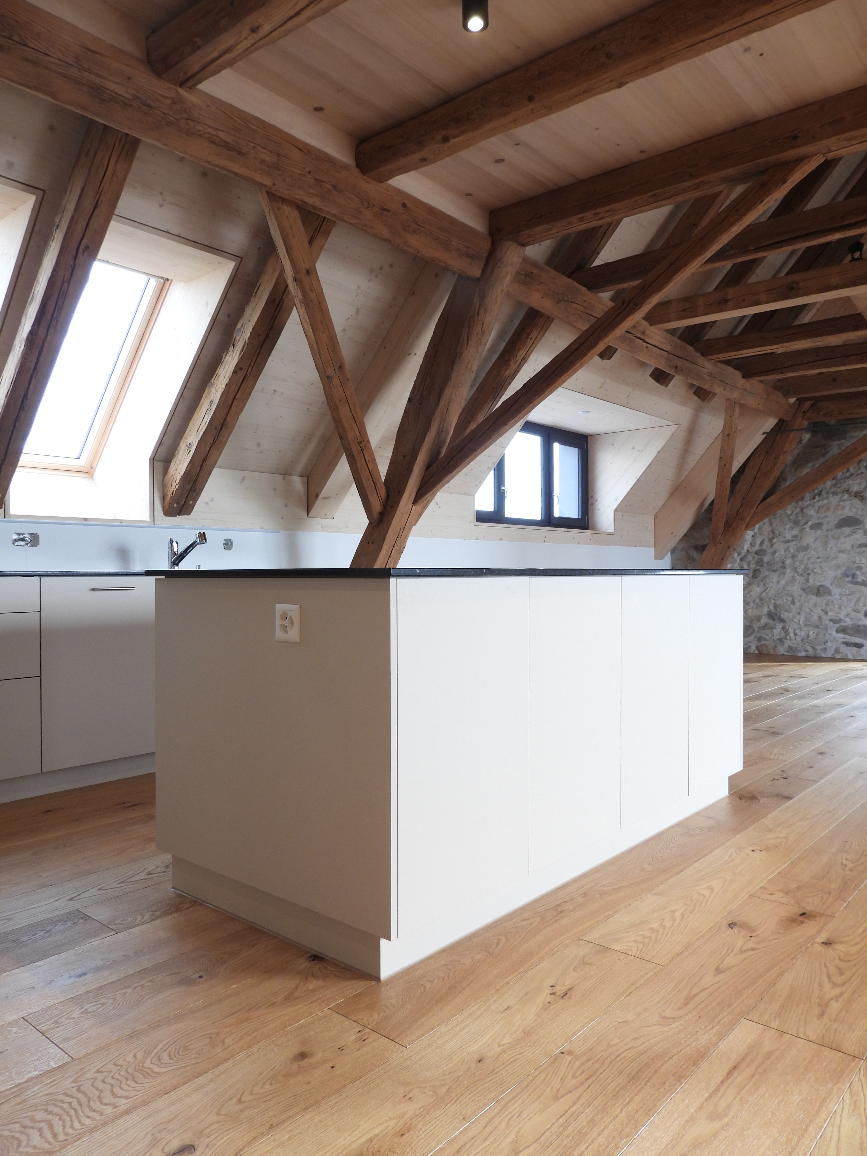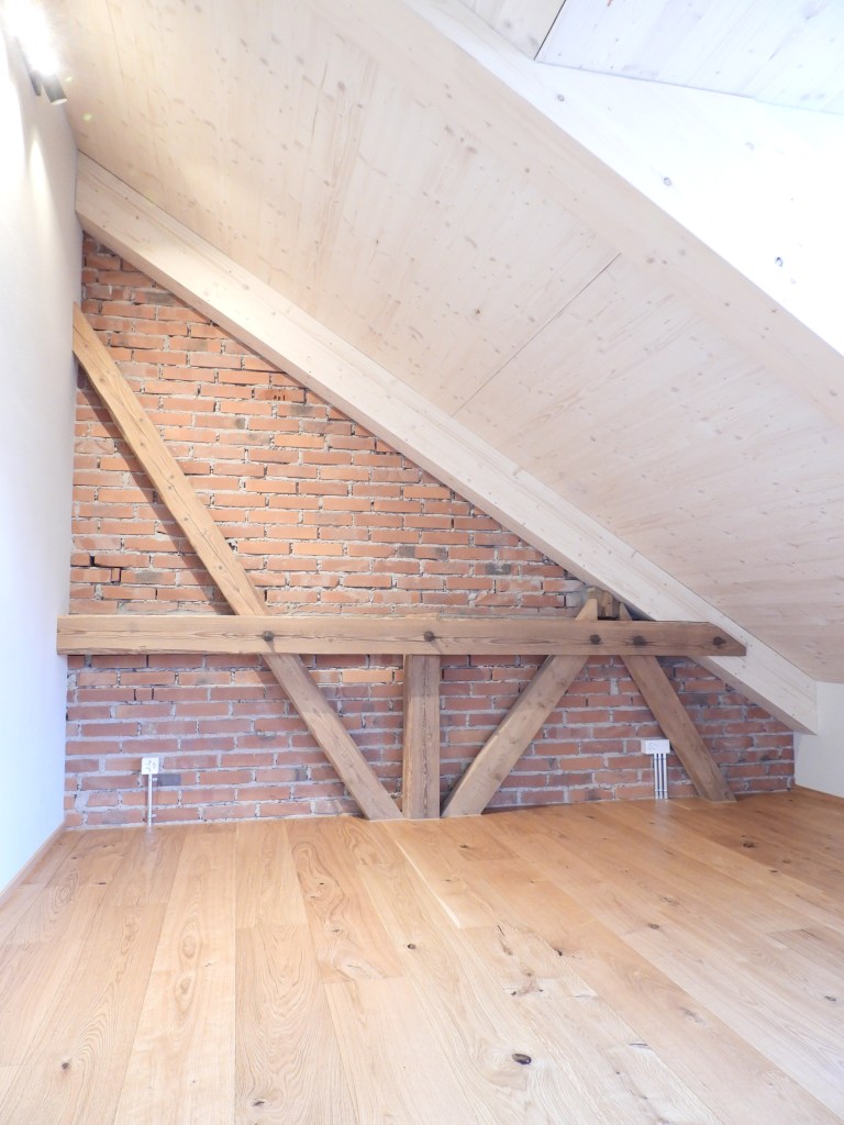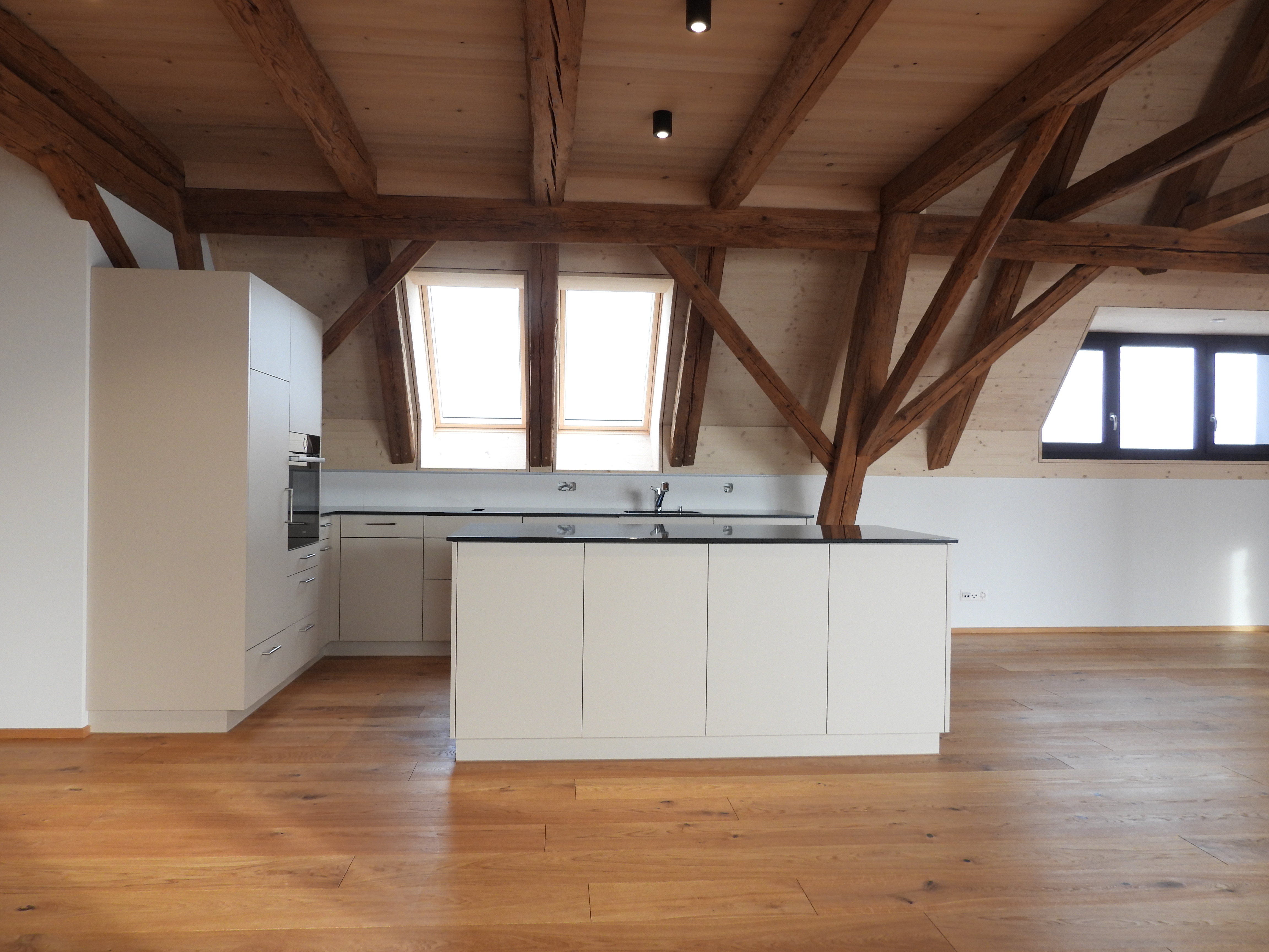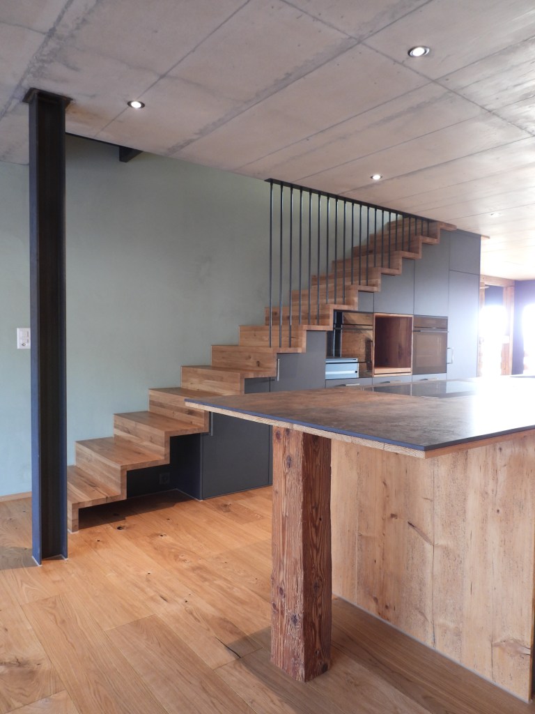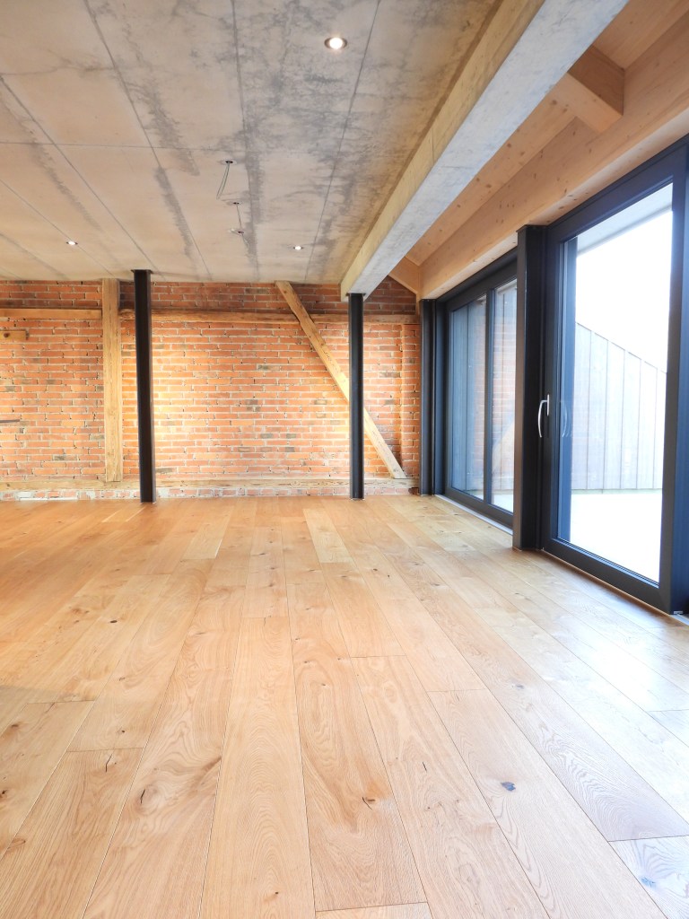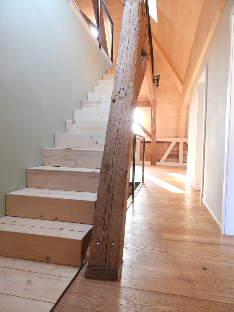 Die Wohnungen wurden mit viel Liebe zum Detail und unter Berücksichtigung der historischen Bausubstanzen komplett saniert. Alle Wohnungen verfügen über eine Nord-Süd Ausrichtung und der Charme des Bauernhauses wurde bei jeder Wohnung eingebaut. Die Nasszellen in der Mitte der Wohnungen dienen als raumbildendes Element und ermöglichen die Anordnung der Wohn- und Essbereiche an den gut belichteten Fassadenseiten. Beim Ausbau wurde viel Wert auf hochwertigen Parkett sowie moderne Küchen und Badezimmer mit eigener Waschmaschine und Tumbler gelegt. Neben Balkonen verfügt jede Wohnung über ein Kellerabteil inkl. Velokeller. So entstehen individuell, stilvoll ausgebaute Wohnungen mit Charme.