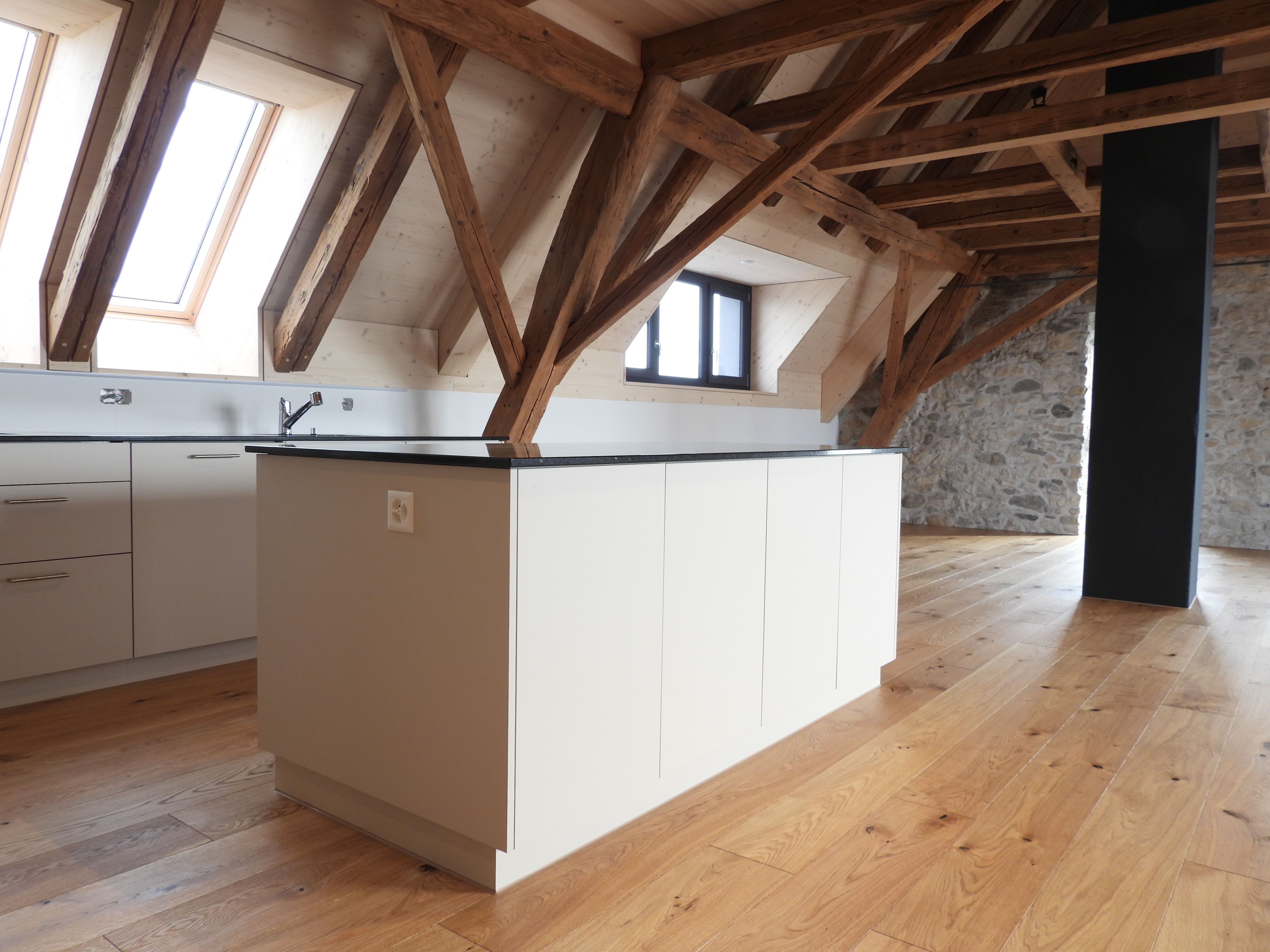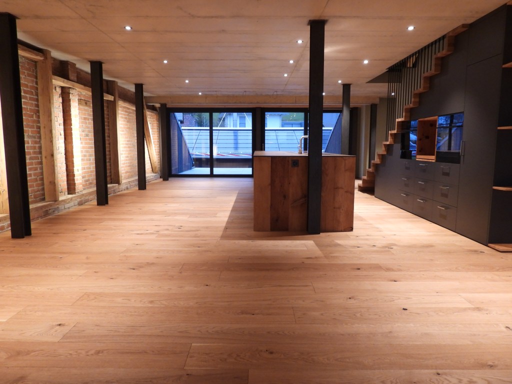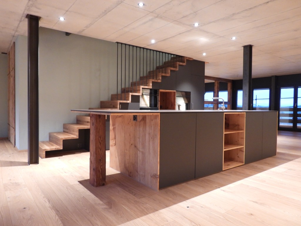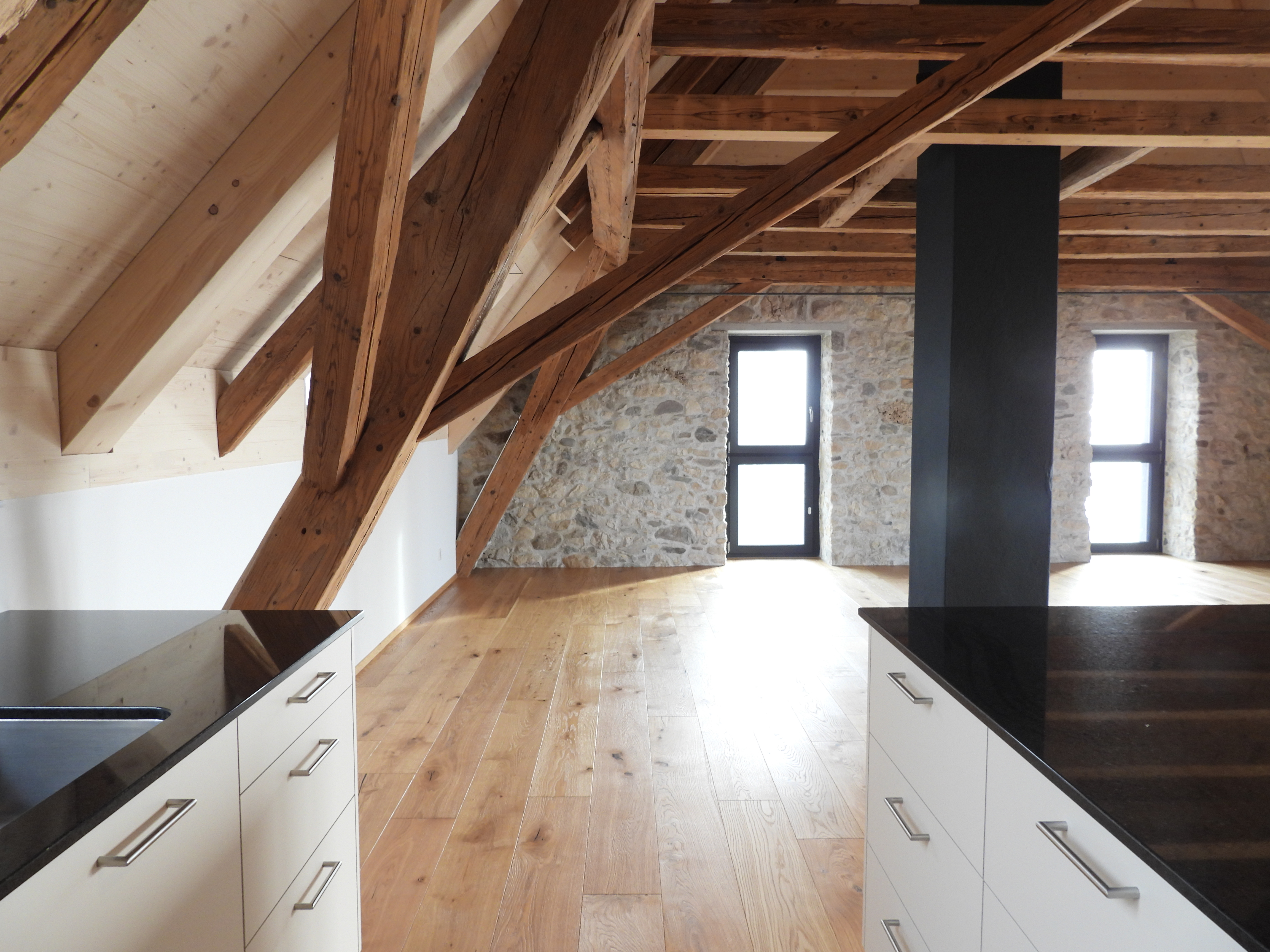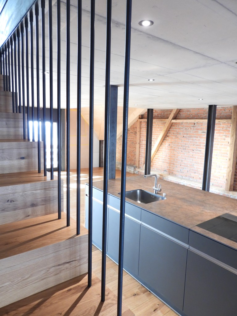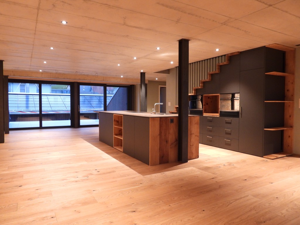 Die Wohnungen wurden mit viel Liebe zum Detail und unter Berücksichtigung der historischen Bausubstanzen komplett saniert. Alle Wohnungen verfügen über eine Nord-Süd Ausrichtung und der Charme des Bauernhauses wurde bei jeder Wohnung eingebaut. Die Nasszellen in der Mitte der Wohnungen dienen als raumbildendes Element und ermöglichen die Anordnung der Wohn- und Essbereiche an den gut belichteten Fassadenseiten. Beim Ausbau wurde viel Wert auf hochwertigen Parkett sowie moderne Küchen und Badezimmer mit eigener Waschmaschine und Tumbler gelegt. Neben Balkonen verfügt jede Wohnung über ein Kellerabteil inkl. Velokeller. So entstehen individuell, stilvoll ausgebaute Wohnungen mit Charme.