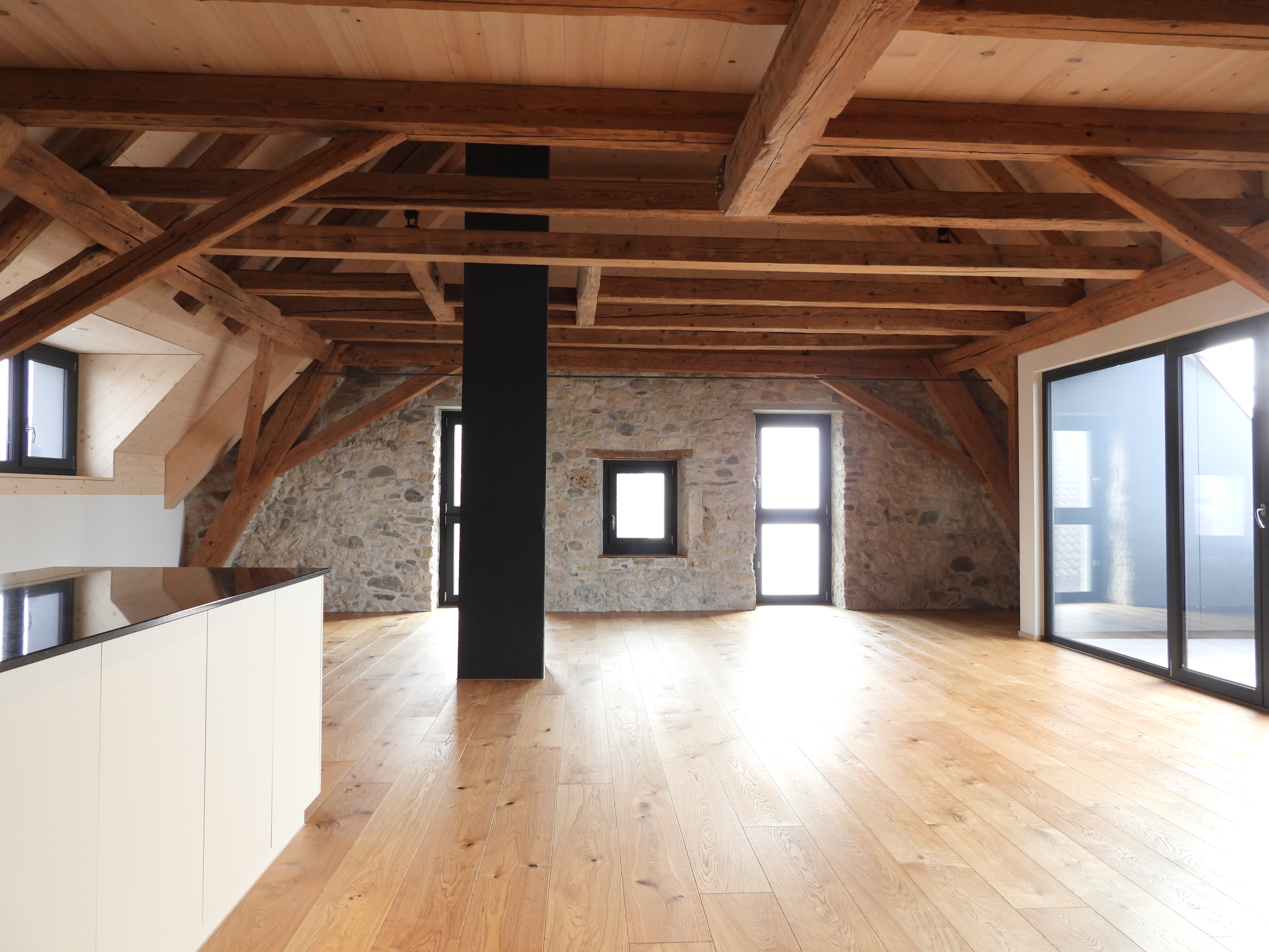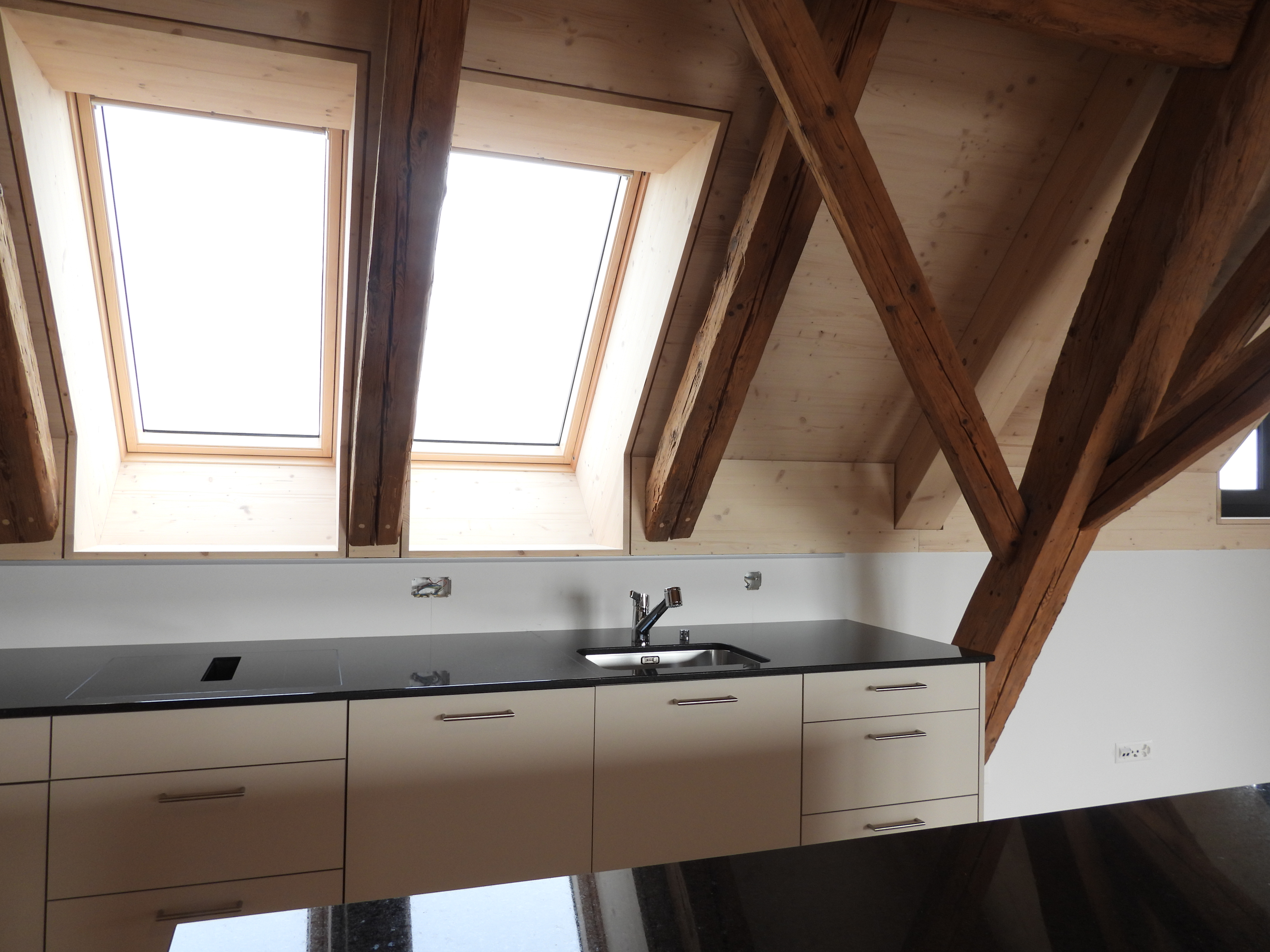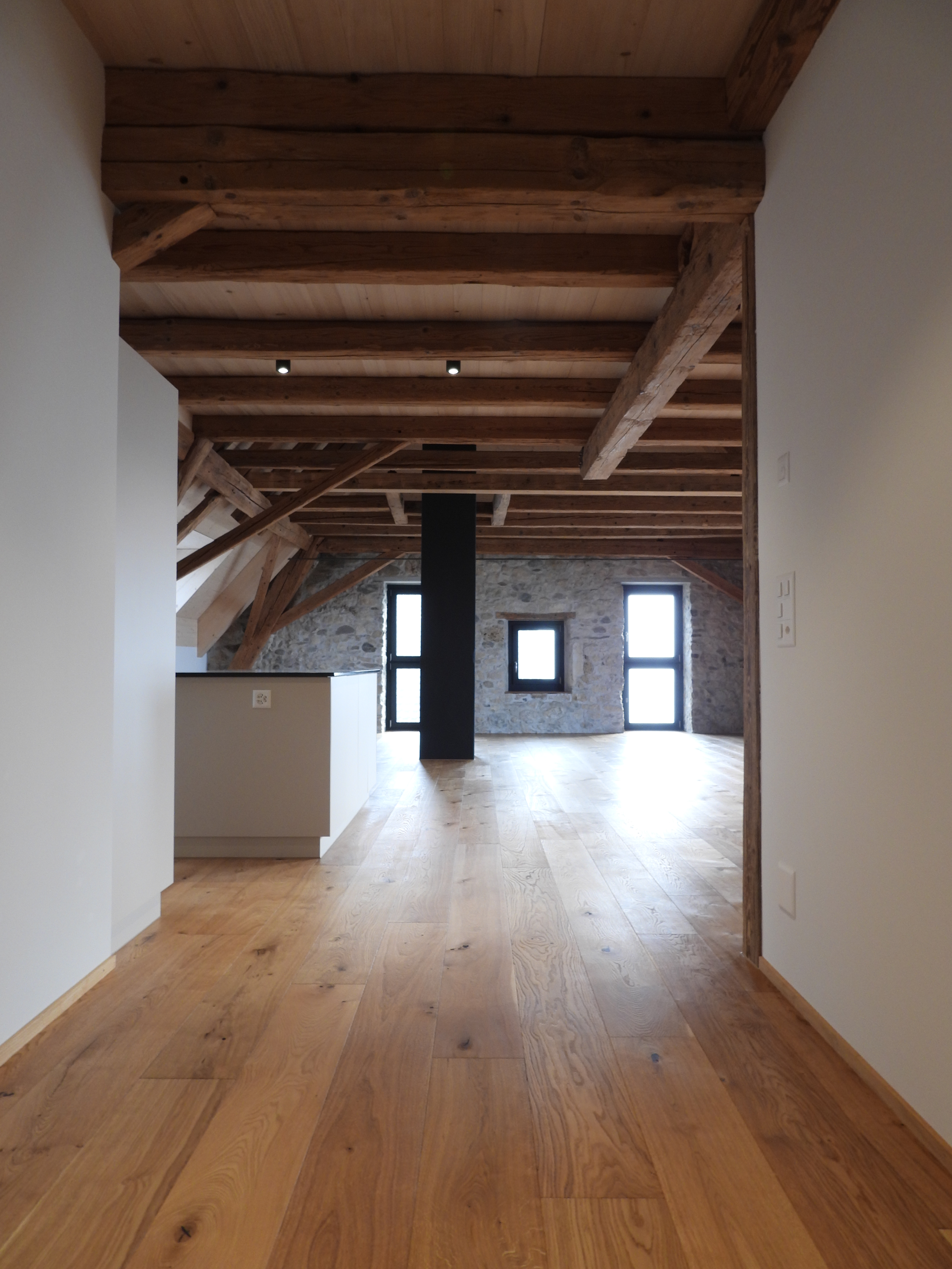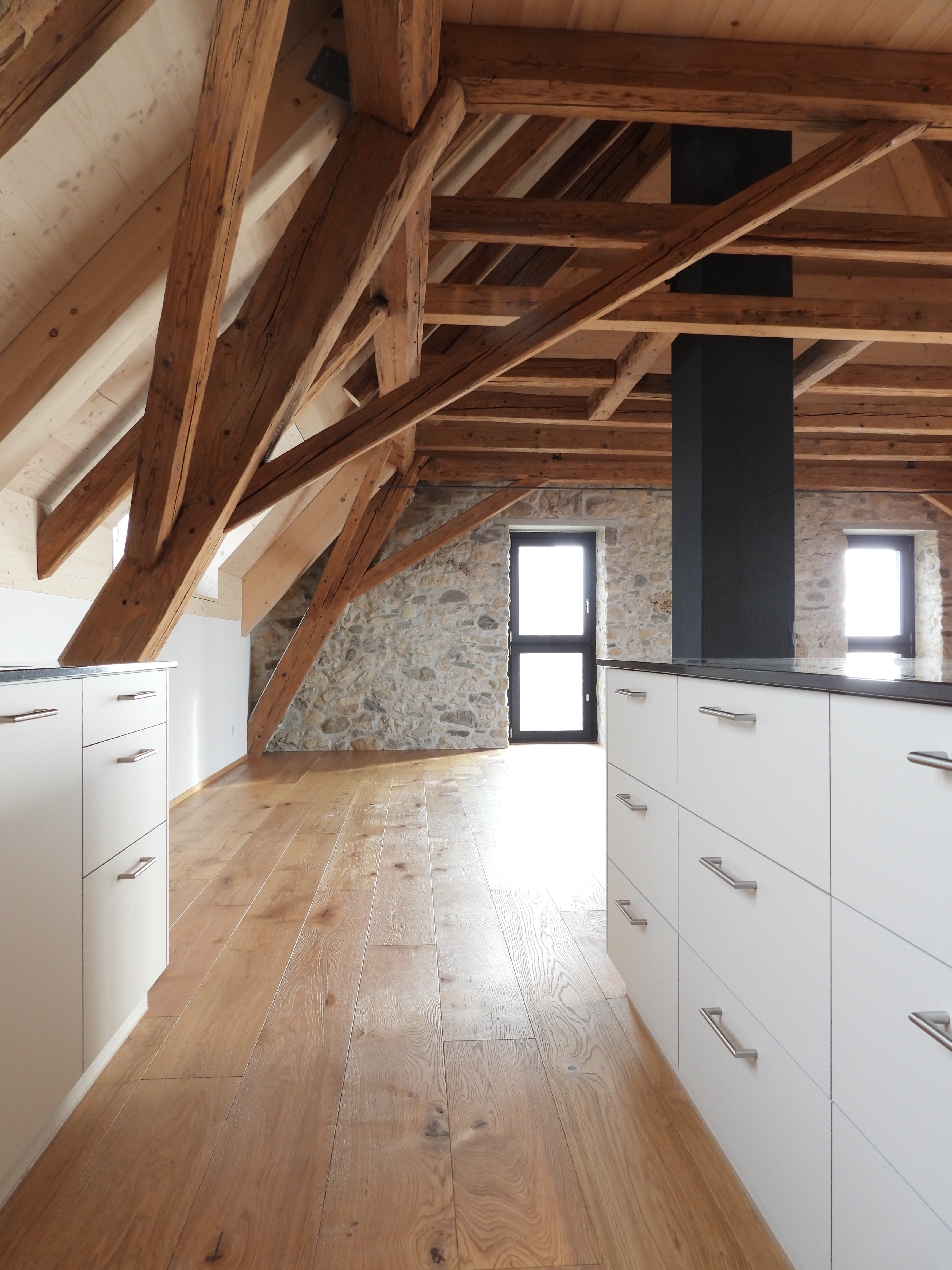 Die Wohnungen wurden mit viel Liebe zum Detail und unter Berücksichtigung der historischen Bausubstanzen komplett saniert. Alle Wohnungen verfügen über eine Nord-Süd Ausrichtung und der Charme des Bauernhauses wurde bei jeder Wohnung eingebaut. Die Nasszellen in der Mitte der Wohnungen dienen als raumbildendes Element und ermöglichen die Anordnung der Wohn- und Essbereiche an den gut belichteten Fassadenseiten. Beim Ausbau wurde viel Wert auf hochwertigen Parkett sowie moderne Küchen und Badezimmer mit eigener Waschmaschine und Tumbler gelegt. Neben Balkonen verfügt jede Wohnung über ein Kellerabteil inkl. Velokeller. So entstehen individuell, stilvoll ausgebaute Wohnungen mit Charme.